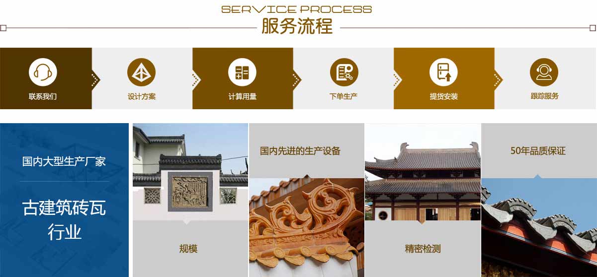 我公司專業生產古建琉璃瓦、青磚、青瓦等仿古建材,質優(yōu)價廉,是一家質量信得過、實力雄厚的廠家。
